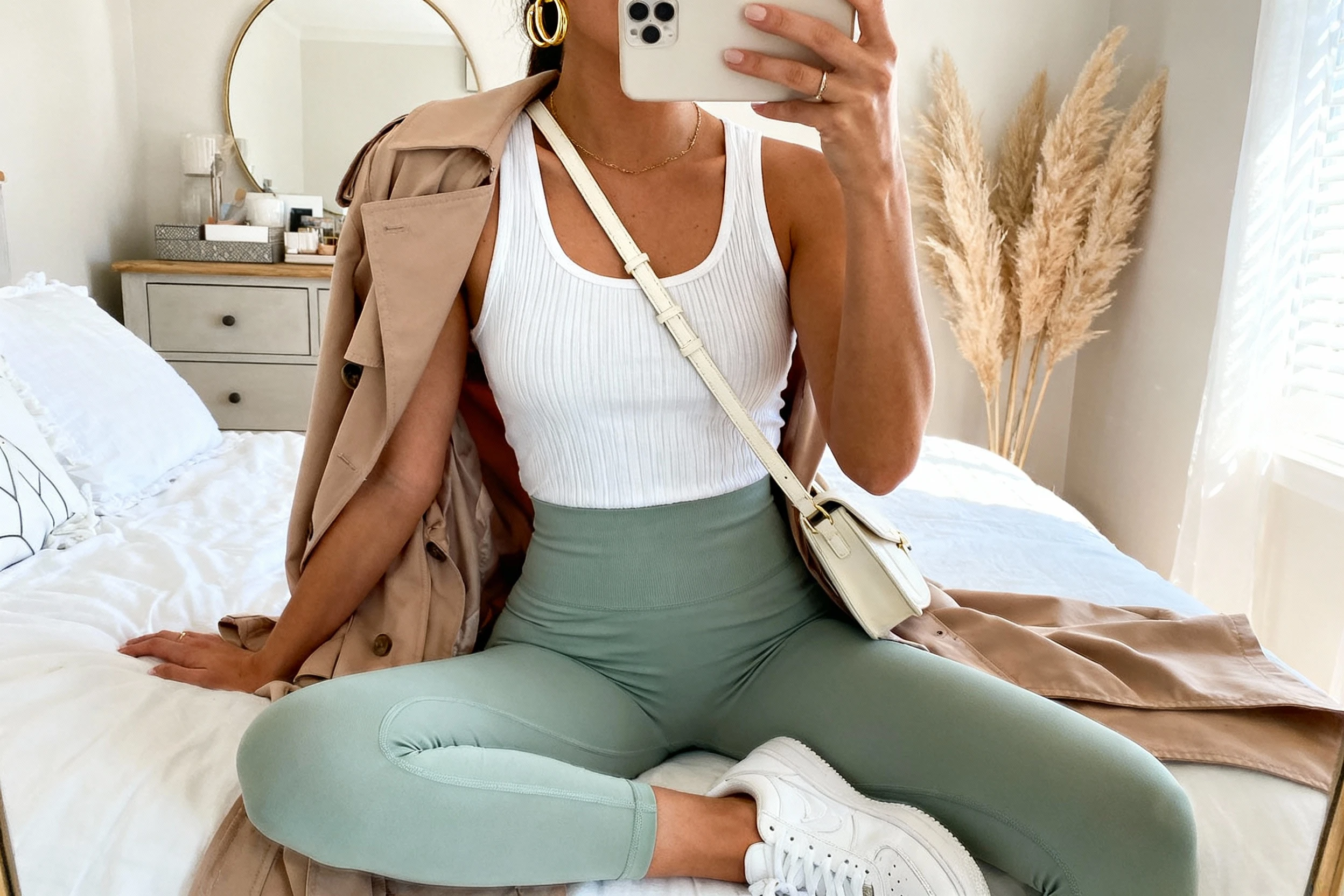 Pick one color family and go head-to-toe. A monochrome legging set with elegant layering instantly reads expensive. It’s minimal, sleek, and shockingly easy to put together.