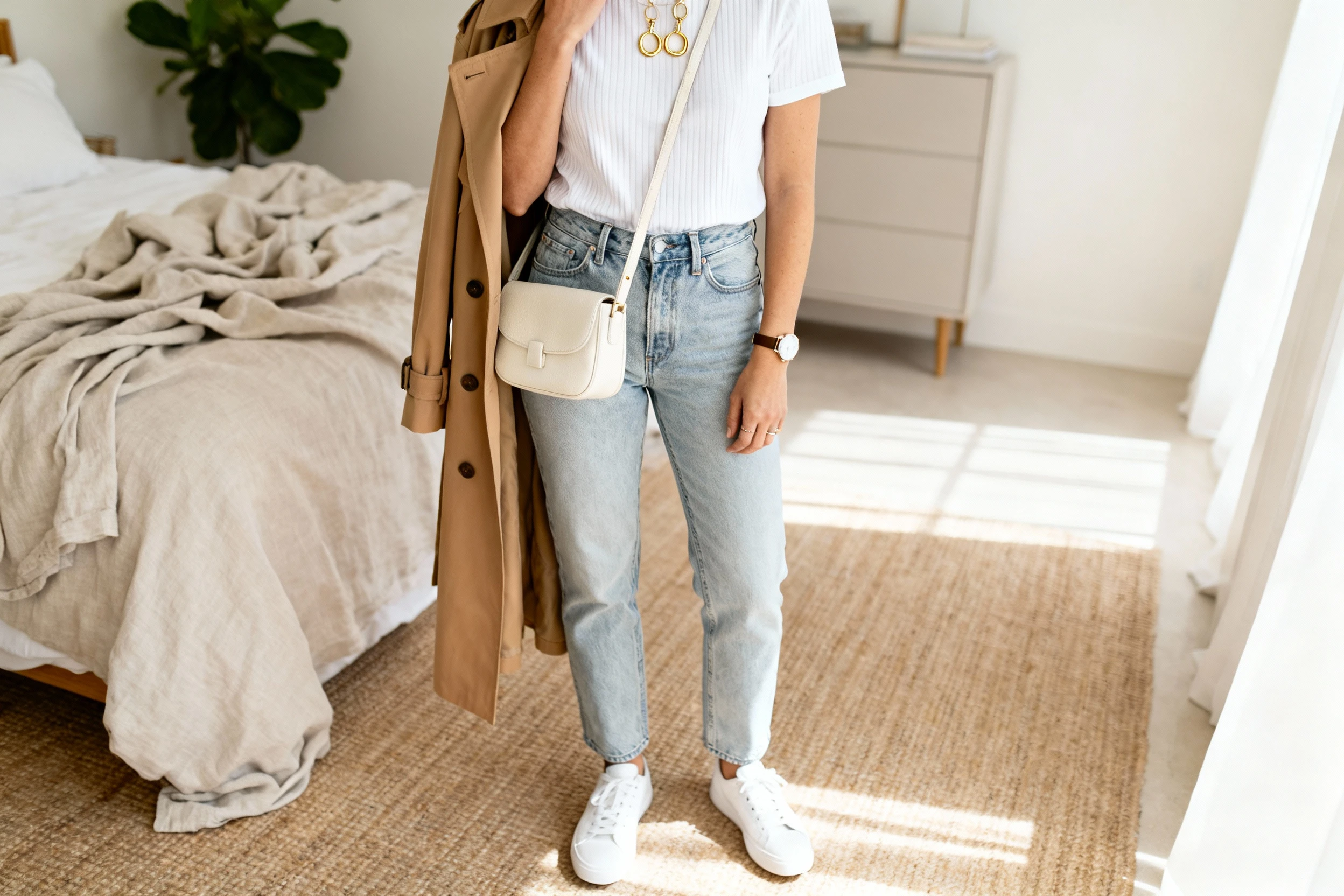 Perfect for pharmacy-to-post-office trips and café runs. Swap the trench for a utility jacket when you want something a little more casual. If the wind picks up, a lightweight scarf ties it all together beautifully.